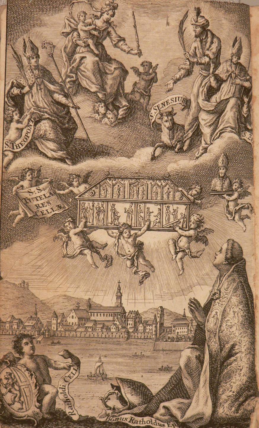 Abb.: Südansicht von Radolfzell. Westlich der Stadtmauer befindet sich das Kloster. Kupferstich von Klauber, ca. 1745. © Stadtmuseum Radolfzell